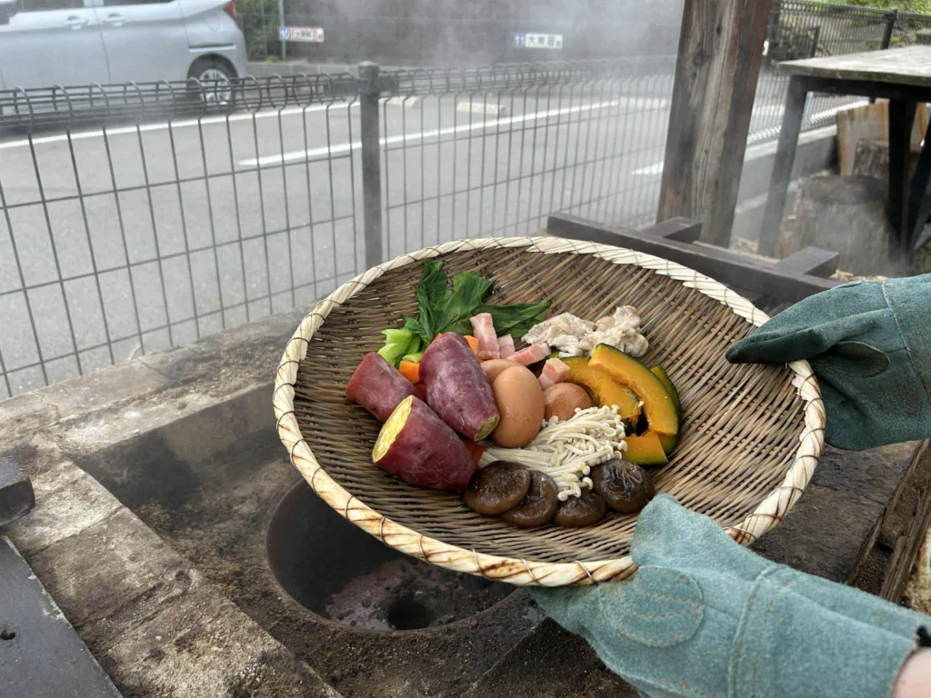 高温の湯気に蒸されることで、素材の旨味が凝縮。さらに、温泉のミネラル分が加わり、食材本来の美味しさを最大限に引き出します。